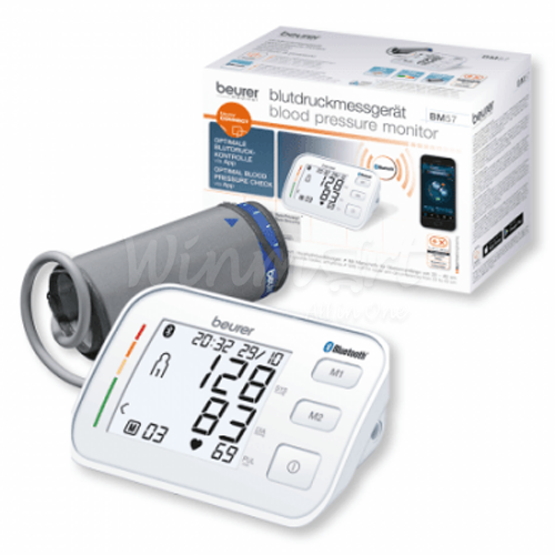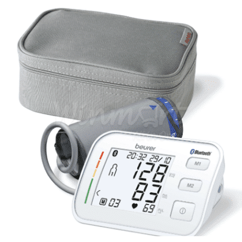 - Máy đo huyết áp bắp tay BM57 có thể kết nối với Bluetooth (Để thực hiện được điều này, bạn phải tải ứng dụng “Beurer Health Manager” có sẵn trên Apple App Store và Google Play).