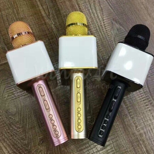 - Trên phần thân loa của thiết bị còn được tích hợp thêm đầy đủ các phím chức năng như: Volume (tăng âm thanh của mic), Echo(tăng độ vang), V+, V- để tăng giảm âm lượng của bài hát cho vừa phải bạn ấn và giữ nút, để “chuyển tiếp” hay “Quay lại” bài bạn chỉ cần ấn 2 nút đó bài hát bạn muốn hát sẽ quay lại, nút “Dừng” để dừng bài hát, nút nguồn để tắt mic. Nhờ vậy, mà bạn có thể dễ dàng điều chỉnh một số hiệu ứng karaoke ngay trên micro để đưa ra một bản nhạc karaoke chuyên nghiệp với chất lượng tốt nhất.