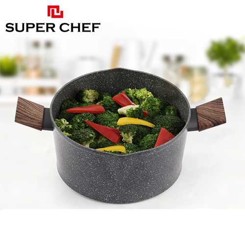 - Chảo siêu bền bỉ sử dụng được lâu hơn nhờ chất liệu hợp kim nhôm dày hạn chế biến dạng khi va chạm, đồng thời lớp chống dính Marble cứng hơn hạn chế trầy xước và tuyệt đối không bong tróc giúp sản phẩm luôn như mới.