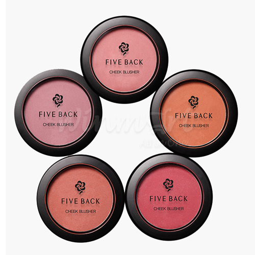 - Phấn má hồng Five Back 5g với nhiều tone màu tự nhiên, tạo hiệu ứng màu sắc tươi tắn và rạng rỡ cho khuôn mặt. Phấn dạng nén, với những hạt phấn siêu mịn, óng ánh sắc màu tạo cảm giác thấm mịn trên da, đem lại cho bạn đôi má hồng hào, tươi tắn suốt cả ngày.