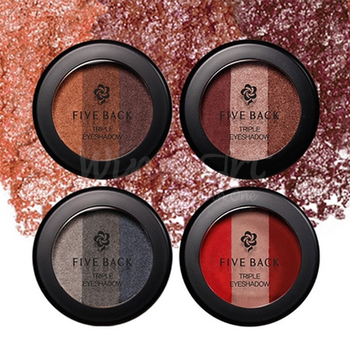 - Phấn Mắt Phối 3 Màu Five Back Triple Eyeshadow (3g) với thiết kế kết hợp hài hòa 3 màu mắt trong cùng một hộp phấn, bao gồm một màu sáng nhất làm màu nền, một màu chính đánh bầu mắt và một màu nhấn ở đuôi giúp đôi mắt sâu và cuốn hút hơn.