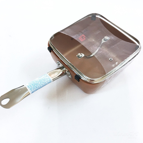 - Bề mặt quánh được phủ lớp chống dính Ceramic với màu vàng đồng, sáng bóng rất bắt mắt và làm tôn thêm vẻ sang trọng cho căn bếp, giúp tạo thêm cảm hứng, niềm vui để các chị em nội trợ sáng tạo, nấu ăn ngon hơn.