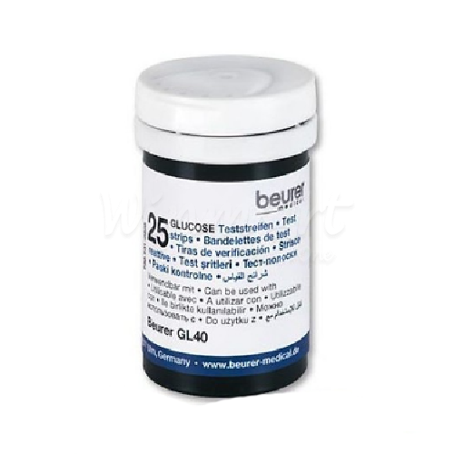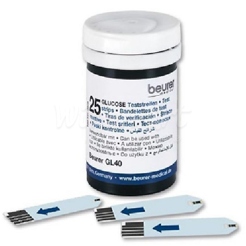Que thử đường huyết là dụng cụ đi kèm không thể thiếu khi mua máy đo đường huyết và rất tiện dụng khi que thử đi kèm máy đã hết và cần thêm để sử dụng. Que thử này có thể dùng cho Máy Đo Đường Huyết Beurer GL40.