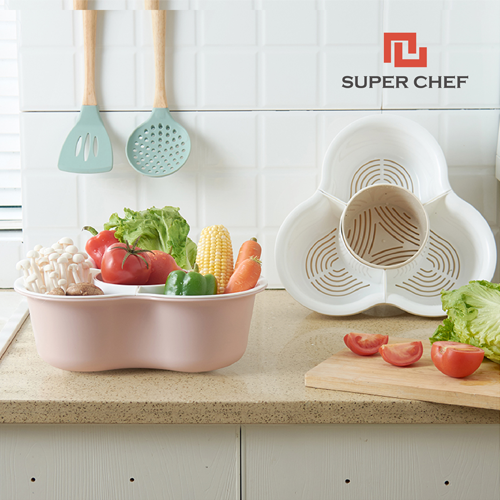 - Kèm theo bên rổ là thau vừa vặn giúp tránh nước chảy ra bàn vừa đỡ gây mất vệ sinh lại vừa giúp rau củ sạch sẽ.
