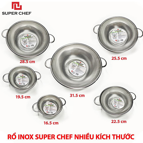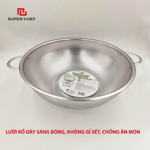 - 2 quai cầm rổ Super Chef bằng Inox và hàn đa điểm với thân rổ rất chắc và có thể treo ráo nước sau khi sử dụng rất tiện lợi.