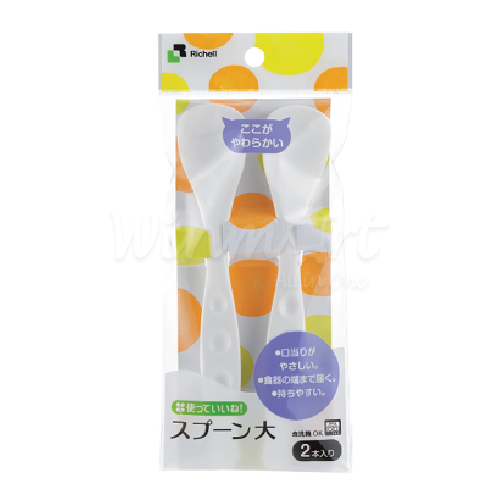 + Bộ 2 thìa mềm Richell với tay cầm có thiết kế chống trơn & đầu thìa bo tròn theo khuôn miệng là sản phẩm thích hợp để xúc đồ ăn cho mọi lứa tuổi.