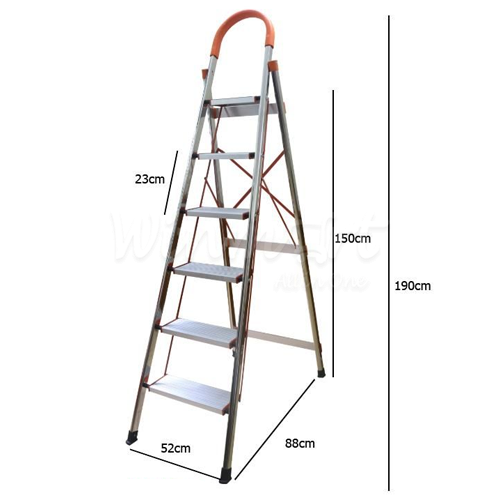 + Thang ghế Ameca có 6 bậc với chiều cao tính từ chân thang tới mặt bậc trên cùng là 1.5m, chiều cao tới tay vịn và 1.9m. Đây là mức chiều cao trung bình phù hợp sử dụng trong các gia đình, văn phòng hay những nơi có diện tích nhỏ, không thể sử dụng được các loại thang lớn, cồng kềnh.
