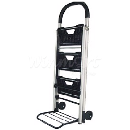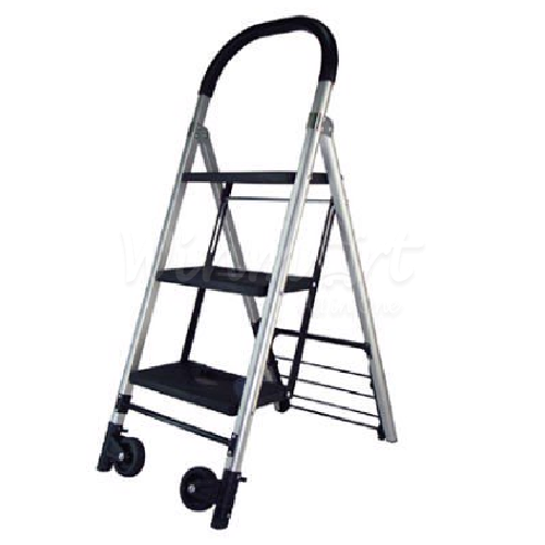 xe đẩy hàng và thang nhôm 2 trong 1 sản phẩm. Thang được thiết kế giống với các sản phẩm thang ghế thông thường với phần tay cầm và mặt bậc rộng rãi. Mặt bậc làm từ nhựa ABS cứng cáp tạo cảm giác an toàn cho người sử dụng.