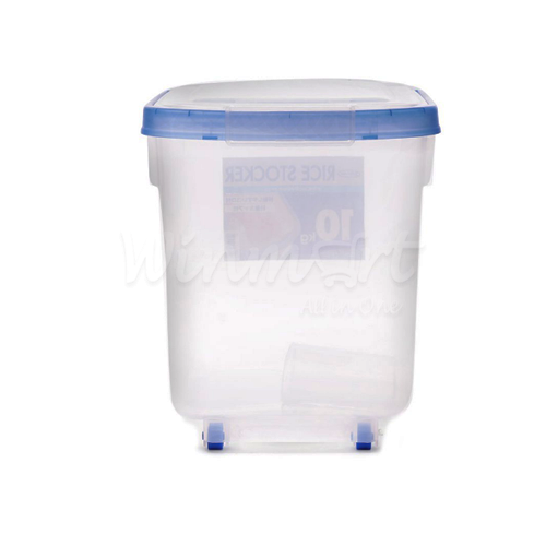 - Thùng đựng nhựa có kèm lon đong gạo, có vạch chia giúp kiểm soát lượng gạo còn tồn. Nắp có gioăng silicone kín, giữ gạo không bị ẩm mốc do ảnh hưởng của môi trường bên ngoài. Thiết kế nắp bật giúp bạn lấy gạo bên trong một cách dễ dàng chỉ bằng cách đẩy nắp lên nhẹ nhàng. Sản phẩm có bánh xe giúp di chuyển dễ dàng.