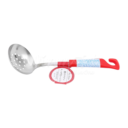Sản phẩm có cán bọc nhựa giúp tránh bị nóng khi múc thức ăn. Thiết kế bề mặt có nhiều lỗ nhỏ giúp vớt thức ăn dễ dàng, ráo nước, phù hợp sử dụng để nấu ăn trong gia đình, nhà hàng, quán ăn.